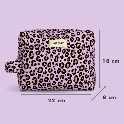 El neceser pequeño AGAMY con estampado de leopardo es ideal para tener siempre a mano tus esenciales de belleza. Compacto, resistente, acolchado y con forro interior, cabe fácilmente en un bolso o en una bolsa de deporte. Su tamaño también es perfecto para guardar un cepillo AGAMY pequeño. Una edición exclusiva, práctica y elegante.