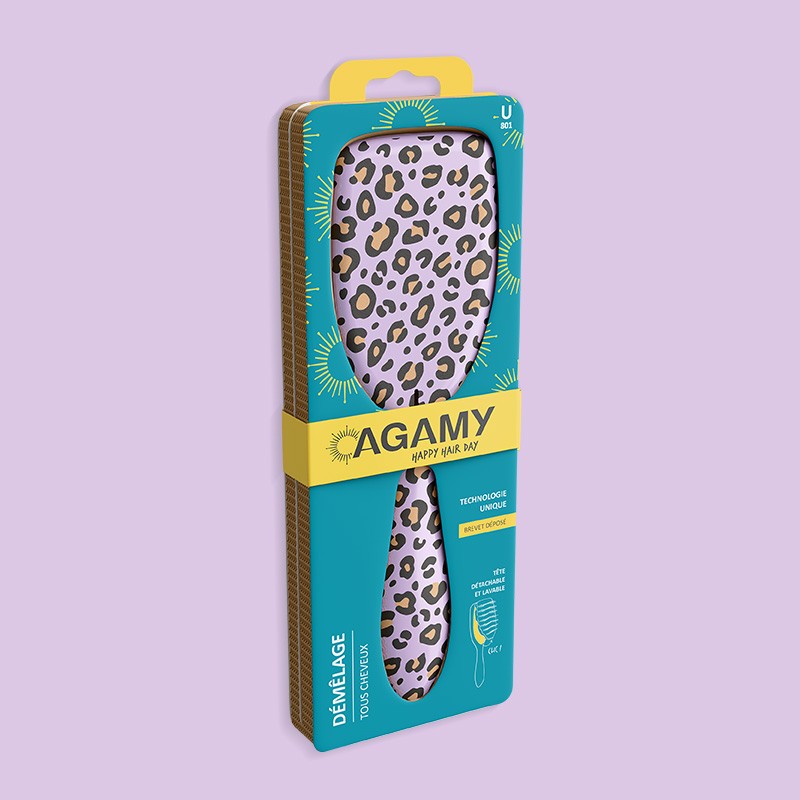 De AGAMY-borstels Dankzij een gepatenteerde technologie ontklit hij je haar moeiteloos: de ultraflexibele pinnetjes volgen precies elke beweging, zodat trekken en breken worden voorkomen.klein model, en een model zonder handvat. Kies het formaat dat het beste bij jou past!
