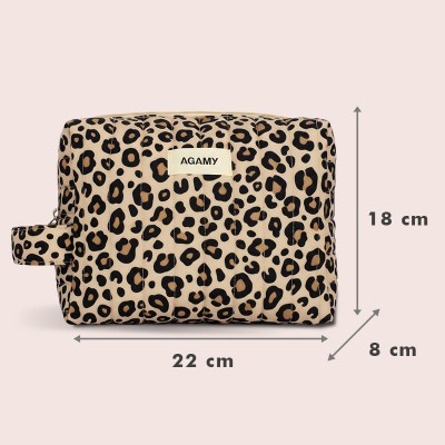 A bolsa AGAMY pequeno modelo com estampa de leopardo é ideal para manter os seus essenciais de beleza sempre à mão. Compacta, resistente, acolchoada e forrada por dentro, cabe facilmente numa bolsa ou num saco de ginástica. O seu formato também é perfeitamente adequado para acomodar uma escova AGAMY pequeno modelo. Uma edição exclusiva, prática e elegante.