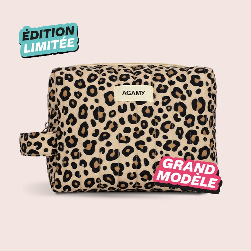 Aqui está a bolsa AGAMY grande que o acompanhará para onde quer que vá! Em edição limitada com o seu icónico padrão leopardo, é ideal para organizar e transportar todos os seus essenciais de beleza com estilo. A condizer com as escovas AGAMY com padrão leopardo, oferece uma grande capacidade de arrumação, uma alça lateral ultra prática para a levar para todo o lado e um design resistente, acolchoado e forrado no interior. Uma edição exclusiva concebida para combinar praticidade e um look icónico.